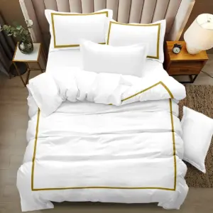סט מצעים יחיד/מיטה וחצי לבן מסגרת זהב