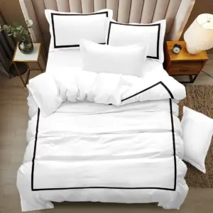 סט מצעים זוגי לבן עם מסגרת שחורה