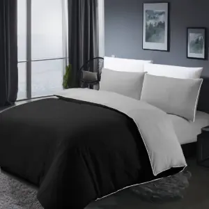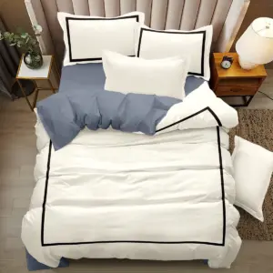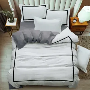 סט מצעים זוגי שחור/אפור עם מסגרת לבנה