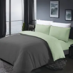 סט מצעים יחיד/מיטה וחצי אפור/ירוק עם מסגרת שחורה
