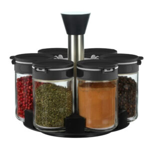 מעמד תבלינים מסתובב עם 6 צנצנות זכוכית מסדרת roso Toolz