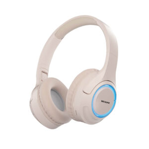 אוזניות Bluetooth אלחוטיות מתקפלות עם תאורת RGB-קרם