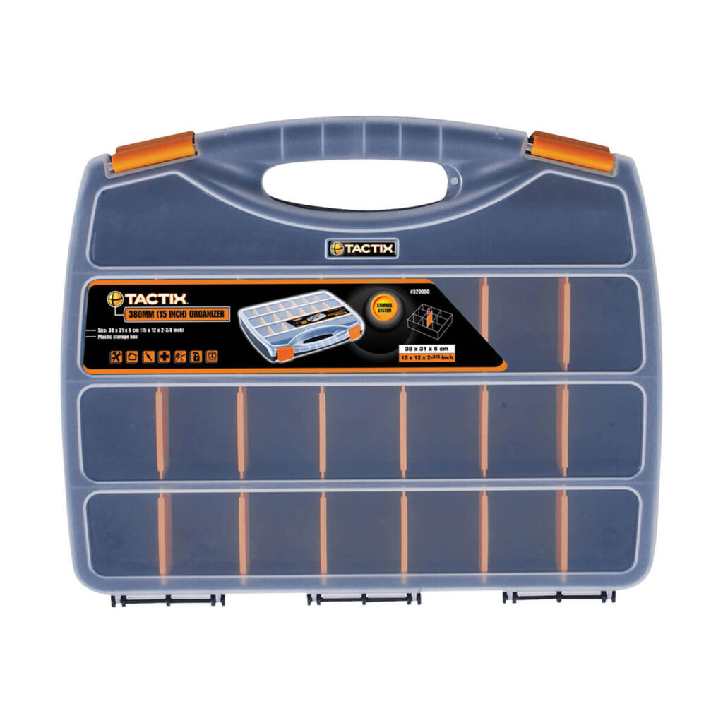 ארגונית 21 תאים מכסה שקוף, ידית נשיאה לנוחות בעבודה, פלסטיק קשיח בעל עמידות גבוהה, חוצצים נשלפים לקביעת גודל התא בהתאם לצורך.