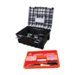 ידיות אלומיניום, מגש כלים נפרד ניתן להסרה, בריחי סגירה חזקים ממתכת, ידית נשיאה עשויה מאלומיניום, מחיצות מובנות לאחסון כלי העבודה, קיבולת אחסון גדולה במיוחד.