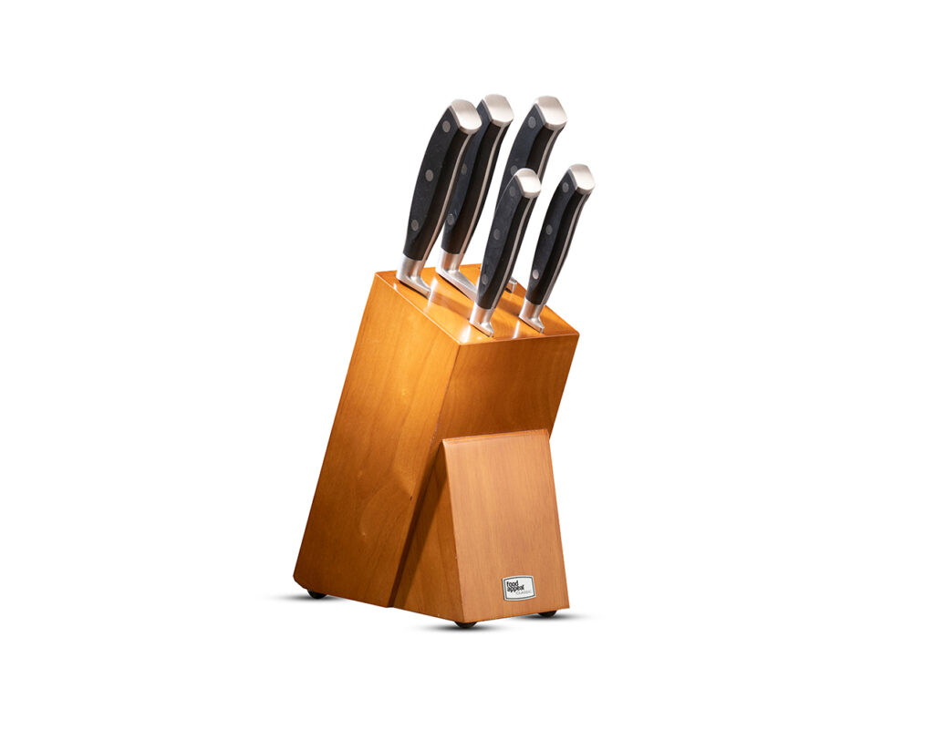 בלוק סכינים 6 חלקים הכולל 5 סכינים ידית שחורה + מעמד עץ כהה CLASSIC מבית Food appeal