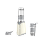בלנדר רב תכליתי להכנת שייקיםשני בקבוקים בנפח: 0.4 ו-0.6 ליטר, ושני מכסים4 להבים לריסוק קרחהספק 500Wמתח -230V/50Hzמידות –142X140X405 מ”מ
