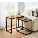 זוג שולחנות / שידות סלון בגוון עץ דגם PORTO