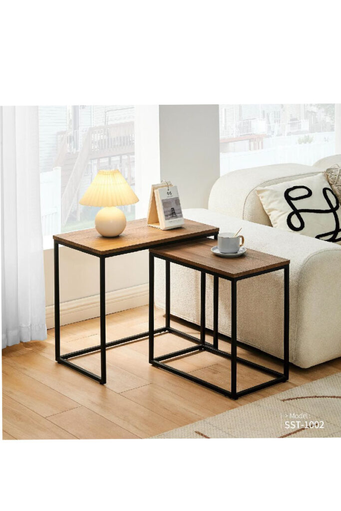 סט שולחנות קפה/ שידות מלבניים לפינת ישיבה או פינת קבלה. סט שולחנות סלון וקפה מעוצבים במראה עכשווי ומודרני בסיס מתכת בגוון שחור פלטות MDF תעשייתי מצופה מלמין.