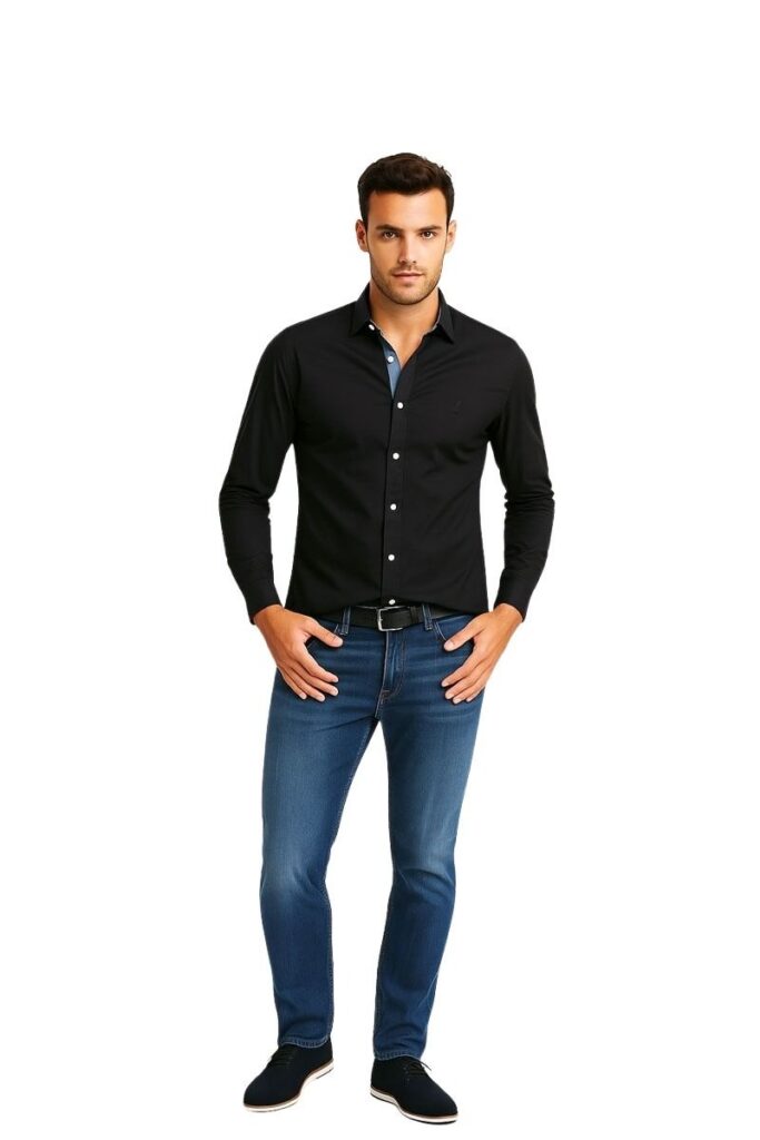 חולצה מכופתרת Nautica לגברים בד סטרץ’ גזרת Tailored Fit