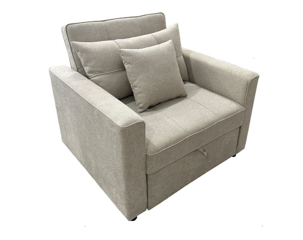 הכירו את פרימו, כורסה נפתחת למיטת יחיד בקלות ובמהירות, כוללת שינוי של זווית משענת הגב (מצב ישיבה, שכיבה וביניים), רגלי פלסטיק נמוכות, ריפוד בד, כרית נוי מלבנית וכרית נוי ריבועית.