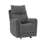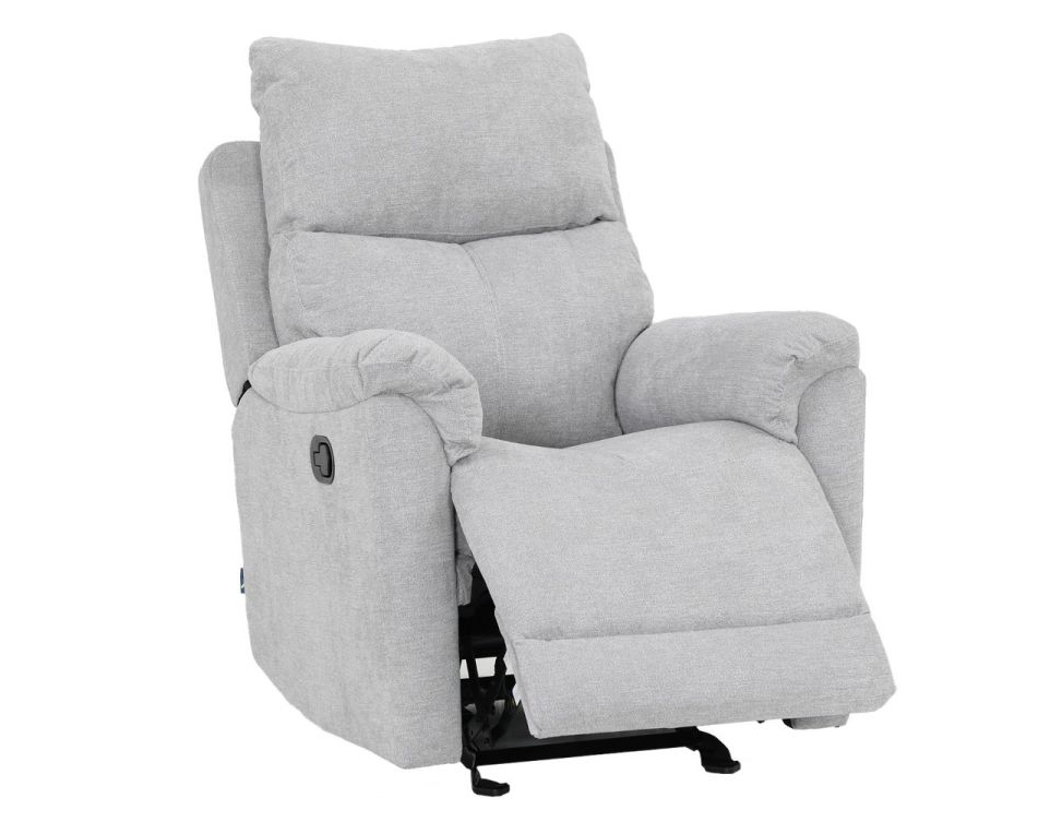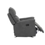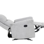 כורסת טלוויזיה בריפוד בד הכוללת מנגנון ידני הפועל באמצעות ידית משיכה, מנגנון נדנוד גליידר, מערכת קפיצים מבודדים במושב והדום רגליים רציף.