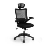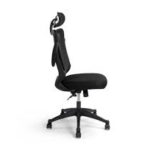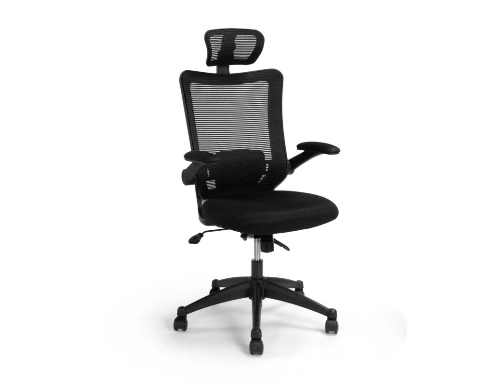 כיסא משרדי בעיצוב ארגונומי המסייע לישיבה נכונה הכולל משענת ראש מתכווננת, משענת גב מבד רשת אוורירי המתאים את עצמו לגב המשתמש,