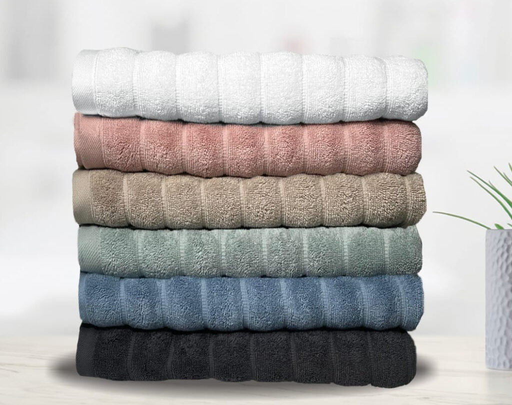 סדרת מגבות דגם גל 600 גרם למ”ר חוט זירו טוויסט עשויה 100% כותנה עבה ואיכותית
