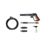 אביזרים נלווים: אקדח / צינור 5M / זרוע התזה / קנה התזה משתנה / קנה התזה טורבו / בקבוק לחומר ניקוי.