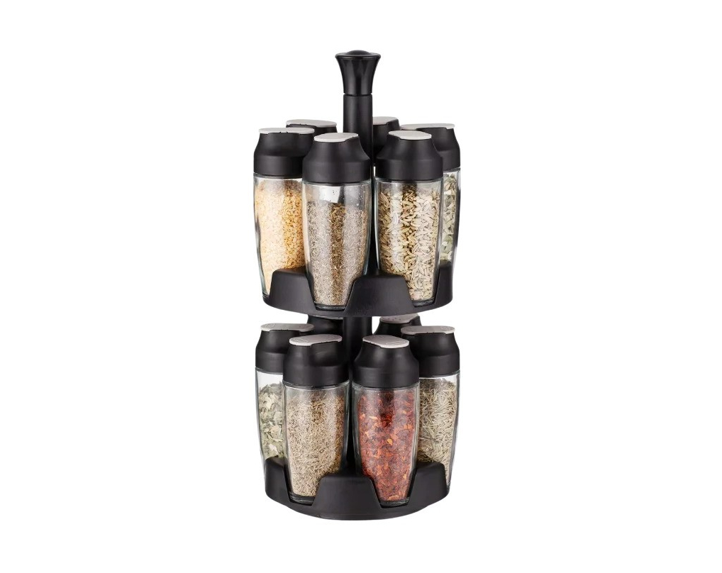 מעמד תבלינים מסתובב 2 קומות עם 12 צנצנות זכוכית מסדרת roso Toolz