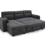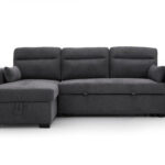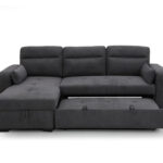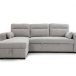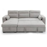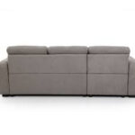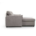 ספה עם שזלונג שנפתחת למיטה נוחה באמצעות מנגנון משיכה עם עיצוב מזמין לנוחות, רגליים נמוכות היוצרות מראה צמוד לרצפה, ריפוד בד ו-2 כריות נוי.
