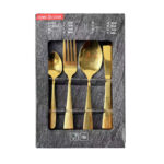 מערכת סכו”ם יוקרתית מנירוסטה אלחלד בציפוי זהב 16 חלקים ל 4 סועדים.