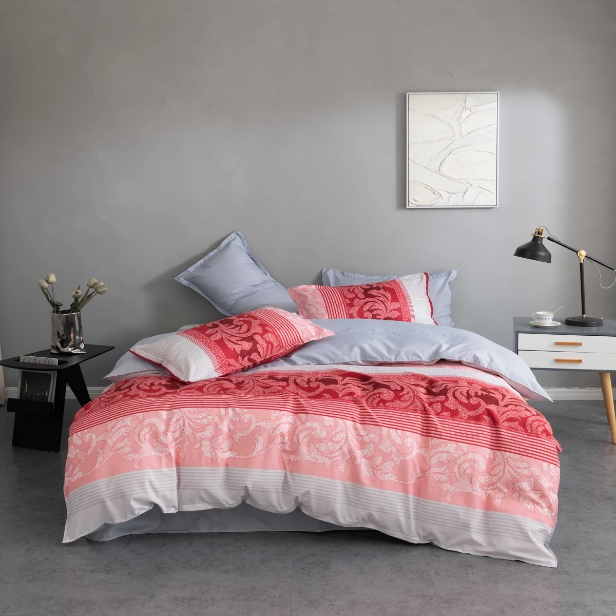 מצעים למיטה וחצי עיטורים אדום אפור