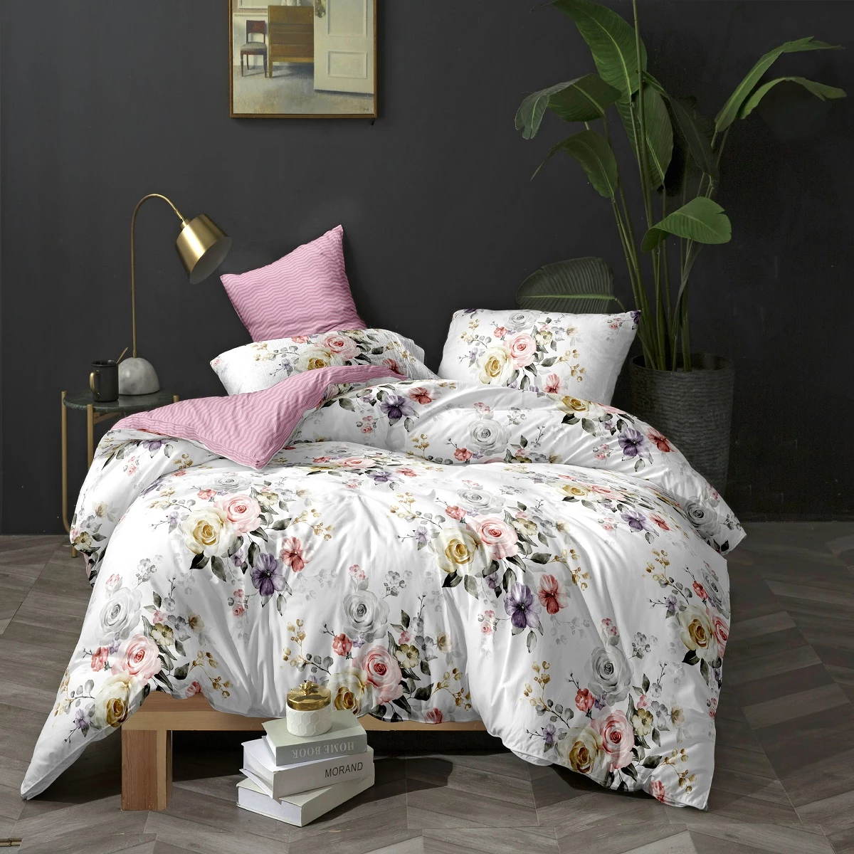 מצעים למיטה וחצי פרחוני ורוד לבן