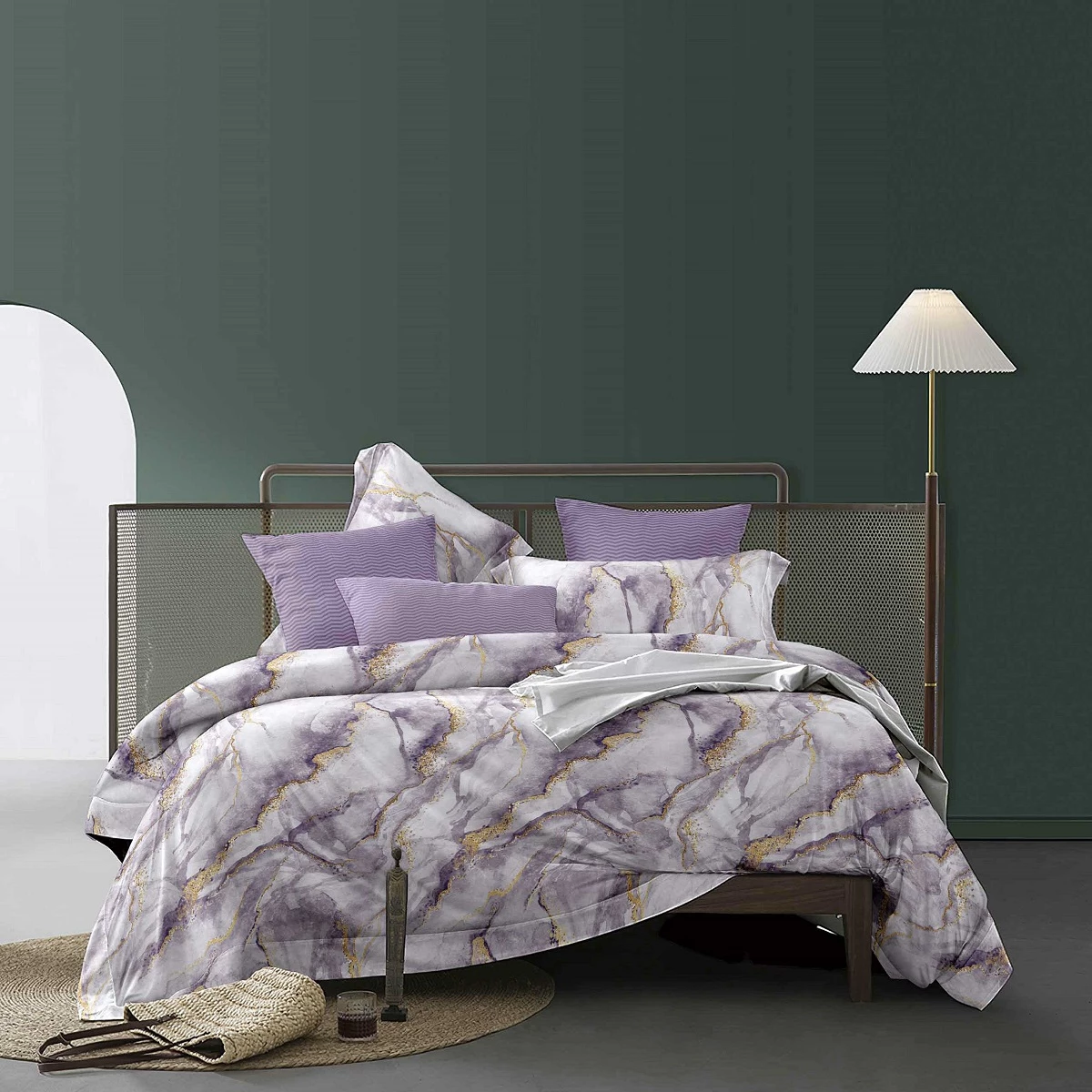 מצעים למיטה וחצי שיש גוון סגול זהב