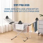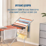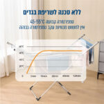 מייבש בגדים חשמלי עם כנפיים נפתחות, חכם ומתקדם, שפועל בטכנולוגיה שקטה וחסכונית
