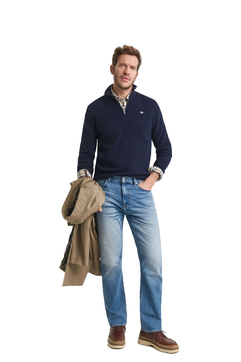 סווטשרט חצי רוכסן Gant לגברים דגם Micro Textured