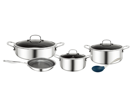 סט סירים 8 חלקים עשוי נירוסטה תלת-שכבתית מתקדמת, בעלת ציפוי היברדי נון סטיק מעוצב.