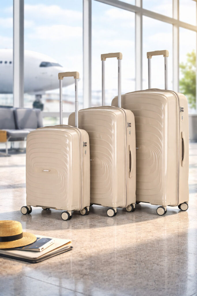 סט מזוודות איכותי ועמיד במיוחד, עשוי חומר PP מתקדם, בעיצוב מודרני עם דגש על נוחות שימוש, בטיחות ועמידות גבוהה לנסיעות בארץ ובחו״ל.