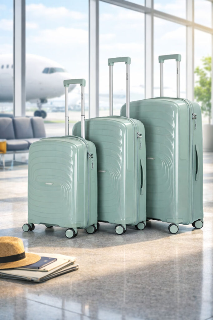 סט מזוודות איכותי ועמיד במיוחד, עשוי חומר PP מתקדם, בעיצוב מודרני עם דגש על נוחות שימוש, בטיחות ועמידות גבוהה לנסיעות בארץ ובחו״ל.
