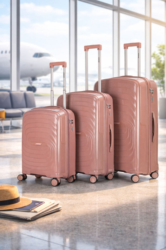 סט מזוודות איכותי ועמיד במיוחד, עשוי חומר PP מתקדם, בעיצוב מודרני עם דגש על נוחות שימוש, בטיחות ועמידות גבוהה לנסיעות בארץ ובחו״ל.