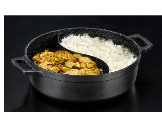 בסיס עבה עם תחתית אינדוקציה מקצועית המשפרת את אפקטיביות פיזור החום - לבישול בריא עוד יותר. הסיר המחולק מתאים לבישול ולטיגון של שני תבשילים במקביל. הסיר מחולק לשניים באמצעות דופן הפרדה בצורת S.חלוקה המאפשרת בעת ובעונה אחת להכין שני תבשילים שונים בסיר אחד. זה יכול להיות שני תבשילי אורז שזמני הבישול שלהם תואמים, או תבשיל עוף שלאחר שבושל בחלקו האחד של הסיר מצטרף אליו תבשיל "תוספת" כמו: ירקות, קטניות, קינואה ,פסטה או אורז. העיצוב והפרקטיות של הסיר מוסיפים מימד נוסף של הגשה מהכיריים או התנור ישירות לשולחן האוכל.