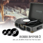 רמקולים סטריאו 5X2W מובנים בתוך הפטיפון לשמיעת התקליטים ללא צורך בחיבורים נוספים