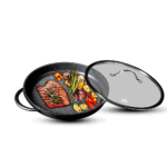 פלטת גריל עגולה עם מכסה זכוכית 30 ס”מ BLACK MARBLE מבית Food appeal