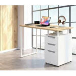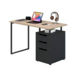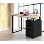 כל המאפיינים שצריך כדי לעבוד בנוח – עכשיו בשולחן עבודה אחד: משטח עבודה מרווח מעץ, 3 מגירות רחבות, מדף פתוח ורגלי מתכת דקות שמשאירות המון מקום לרגליים שלך בזמן העבודה.