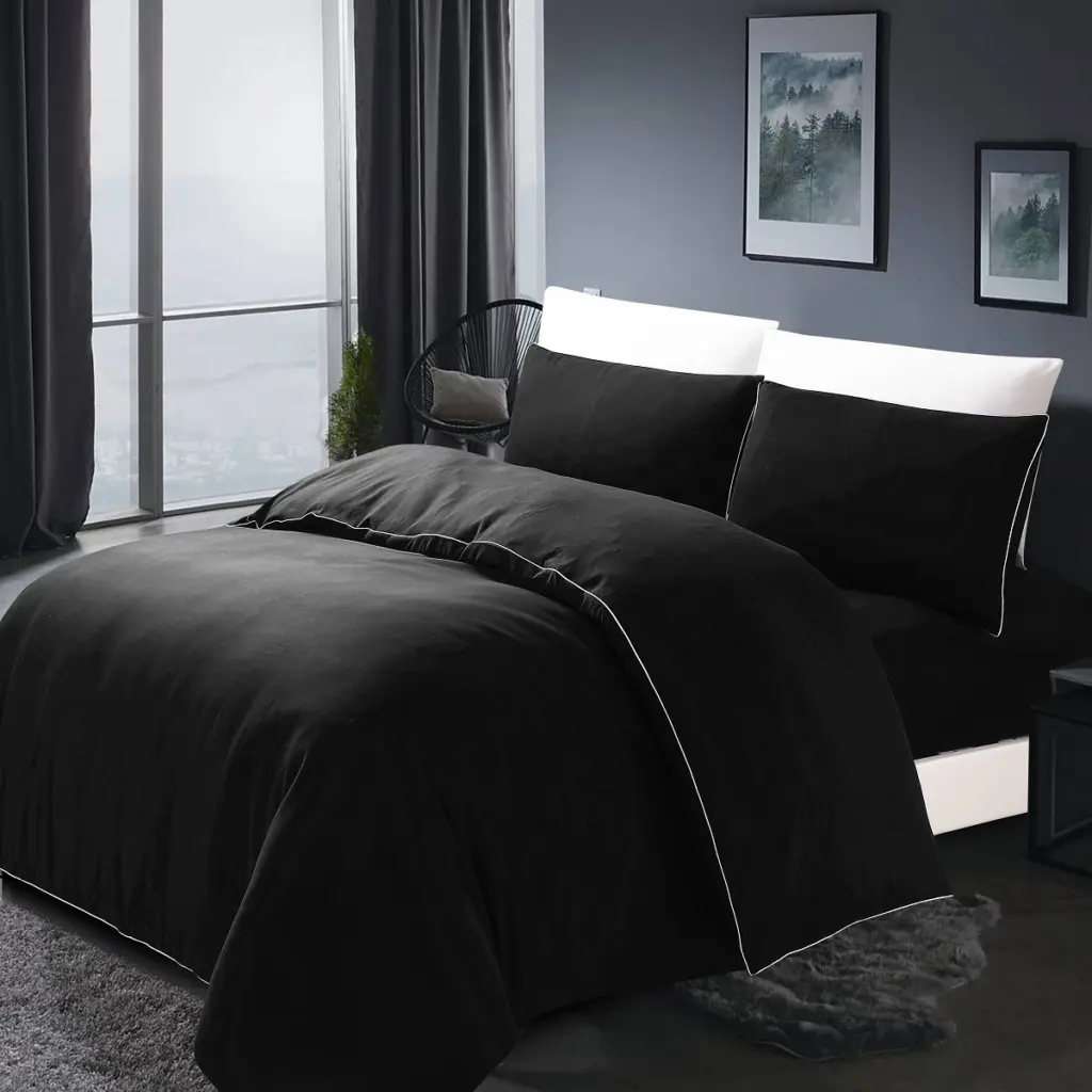 סט מצעים יחיד/מיטה וחצי שחור מסגרת לבנה