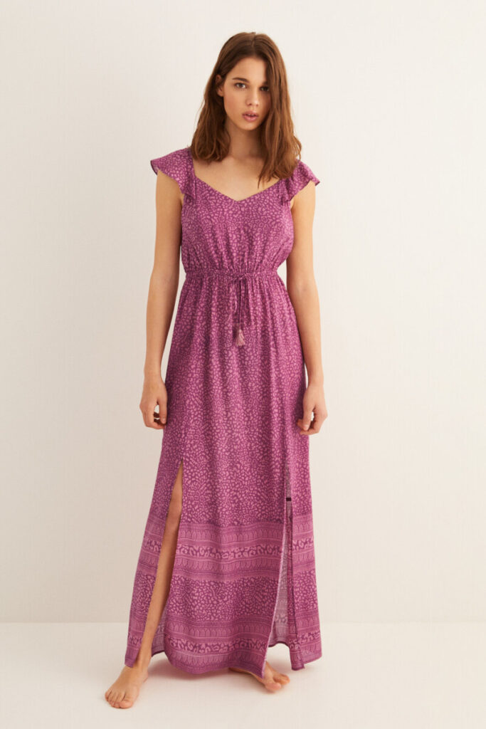 Long printed dress with V-neck Women Secret