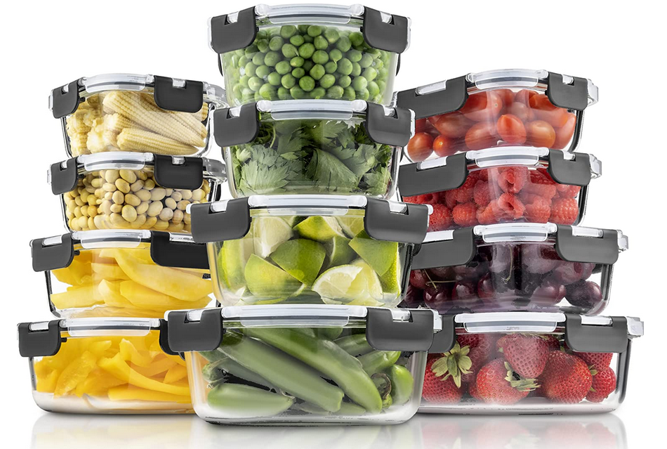 סט 24 חלקים: 12 קופסאות עם 12 מכסים בצורות וגדלים שונים מתאימים להכנת ארוחות, ולכל צרכי אחסון המזון.