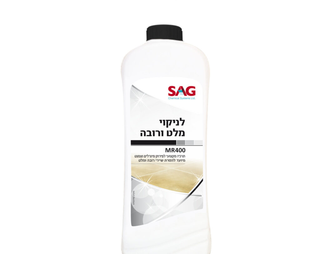 MR400 מבית SAG הינו תרכיז מקצועי בעל מרכיבי איכול עדינים, המאפשר ניקוי מהיר ויסודי בתשתיות בהן רמת הלכלוך קלה עד בינונית . בשונה מחומצות מלחיות, החומר פותח מנוסחה מתקדמת לניקוי מסיבי של כל לכלוך ו/או כתם על בסיס מינרלי (חומרים צמנטים, אבנית ומלחים, שתן ובקטריות,חלודה וכדומה), מאבני חיפוי וריצוף, שיש גרניט, אריחי גרניט פורצלן ותשתיות עדינות אחרות (עפ”י הוראות יישום).החומר אינו פוגע בגומי, פלסטיק וחומרים שאינם מכילים צמנט ומינרלים. החומר עלול לפגוע במתכות רגישות כגון ניקל / אלומיניום ועוד … החומר אינו מתאים לעבודה על תשתיות של שיש ואבנים טבעיות .